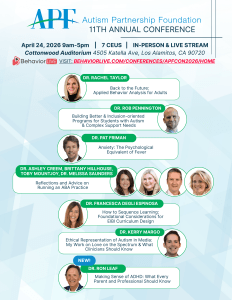APF is committed to advancing professional standards and treatment for individuals diagnosed with ASD through research and training. A world where all individuals with autism reach their fullest potential. The Future is Working x APF We are are working towards making Progressive ABA the definitive standard. On... Join us either in-person or via live stream for our 11th Annual Conference happening April 24th, 2026! Visit: https://behaviorlive.com/conferences/apfcon2026/home The Boathouse on the Bay has brought back its monthly "Autism Night Out" event, a private buffet style... Autism Partnership Foundation (APF) is a nonprofit organization dedicated to expanding our understanding of quality, effective, and empirically-supported interventions for Autism Spectrum Disorder (ASD) by conducting innovative research, improving the quality of services through national and international training and consultation, and, most importantly, increasing the availability of effective, quality treatment available to children diagnosed with ASD and their families. In 2025, Autism Partnership Foundation (APF), launched a new initiative called the Partnership for Progress. This program allows individuals to become partners by donating just $12.00 per month, supporting APF’s mission and vision to ensure every child can reach their fullest potential. Through Partnership for Progress, APF provides high-quality intervention, online trainings, and research.